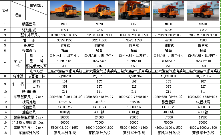 MK50兩軸礦用車以公司MK70平臺(tái)打造,國內(nèi)市場首創(chuàng),填補(bǔ)該類礦用車產(chǎn)品市場的空白。采用行業(yè)內(nèi)得到廣泛認(rèn)可的玉柴發(fā)動(dòng)機(jī)、法士特變速箱、車橋承載系統(tǒng)及舒適豪華的駕駛室??捎糜谝苯鸬V山、露天煤礦與鐵礦、水利水電工地、有色金屬礦山、建筑工地等場所的物料運(yùn)輸設(shè)備。