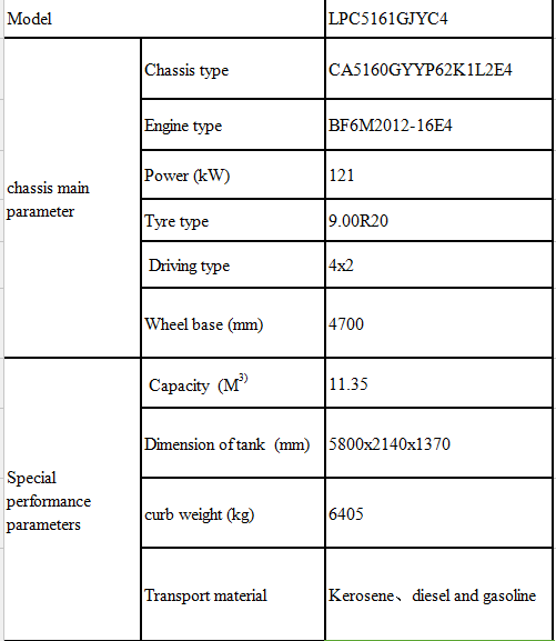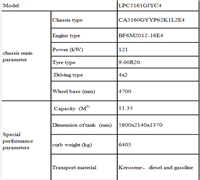 底盤主要性能參數(shù) | 底盤型號(hào) | CA5160GYYP62K1L2E4 | |