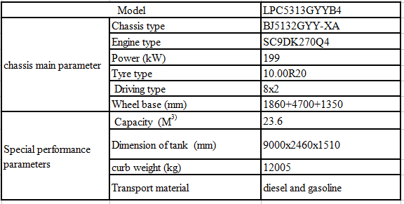 底盤主要性能參數(shù) | 底盤型號(hào) | BJ5132GYY-XA | |